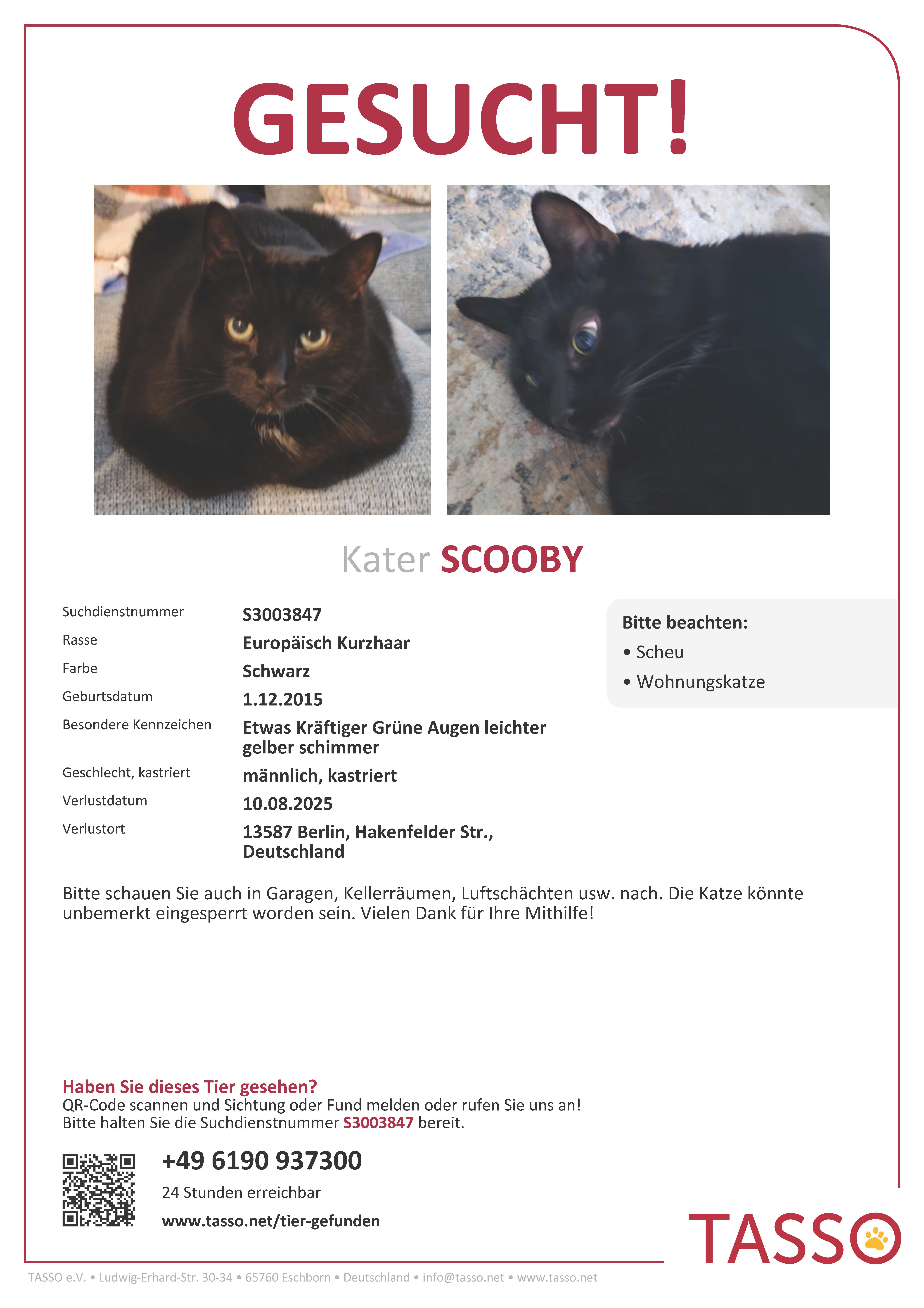 Bei dieser Suchmeldung handelt es sich um eine rein private Vermittlungsanzeige. Wir kennen das Tier nicht! Wenn Sie Fragen zu dem Tier haben und/oder weitere Informationen benötigen, nutzen Sie bitte ausschließlich die angegebenen Kontaktdaten.