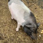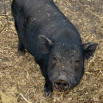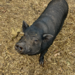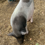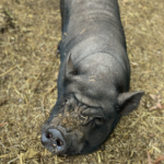Haltung: Die 3 Schweine leben zusammen in einem Gehege mit Unterständen.