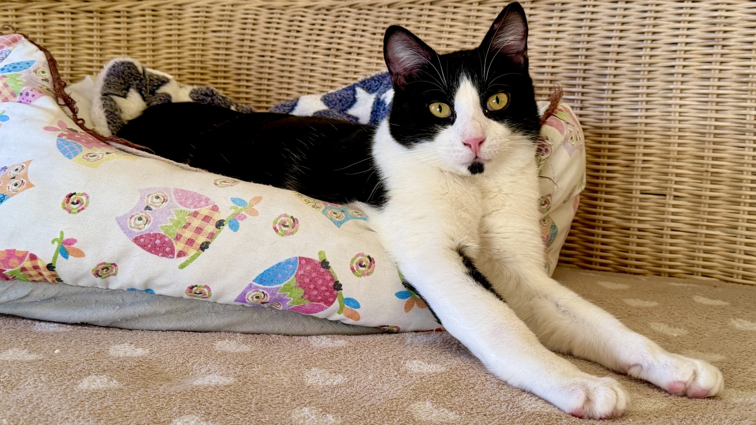 Hier suchen 2 junge Kater aus dem Tierschutz zusammen ein liebevolles zu Hause mit Freigang. Der schöne rote Garfield und der hübsche schwarz-weiße Lupo sind im Mai 2025 geboren. Es sind keine Brüder, verstehen sich aber sehr gut. Garfield ist ein Kater, der sich stark an seinen Artgenossen orientiert. Er ist anfänglich etwas zurückhaltend, würde aber uns Menschen nie anfauchen, kratzen oder beissen. Er ist eher ein devoter 4beiner. Sobald er Vertrauen zu uns gefasst hat, geniesst er die Streicheleinheiten und schnurrt. Er schmiegt sein Köpfchen in die Hand und entspannt. Garfield hat wunderschönes dunkelrotes Fell. Sein Kumpel Lupo ist ein agiler, verspielter aufgeweckter junger Kater. Spielangeln haben es ihm besonders angetan. Lupo ist lustig, etwas frecher Natur, aber einfach nur liebenswert. Er lässt sich auf den Arm nehmen. Lupo schafft es, den etwas introvertierten Garfield aus der Reserve zu locken.