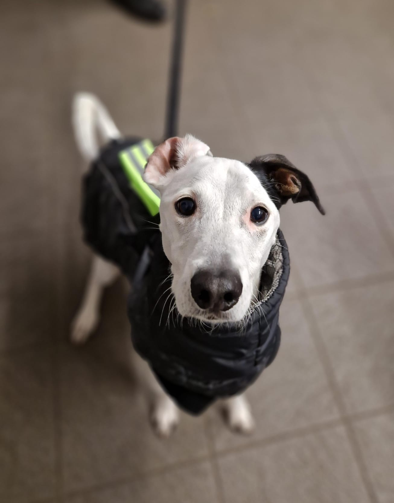 🐾 Geburtstag/Geburtsjahr: 5 Jahre 🐾 Geschlecht: Männlich 🐾 Rasse: Jack-Russell-Windhund-Mix 🐾 Aussehen: weißes, kurzes Fell 🐾 Kastriert: Ja 🐾 Gechipt: Ja 🐾 Abgabegrund: Überforderung 🐾 Im Tierheim seit: 24.09.2025 🐾 Eigenschaften: menschenbezogen, lernwillig, kann nicht alleine bleiben, Jagdtrieb; Er ist der ideale Bürohund, da er ausgesprochen ruhig und ausgeglichen ist. 🐾Besonderheiten: Es wird vermutet, dass Diuk auf beiden Seiten eine Patellaluxation hatte, die operiert wurde. Er hat zudem starke Arthrose in den Beinen, deshalb benötigt er nun dauerhaft Schmerzmittel. Eine gründliche Zahnsanierung wurde bereits durchgeführt. Es ist wichtig, dass Diuk in Bezug auf Rennen und Toben geschont wird. 🐾 Verträglichkeit: verträglich mit Artgenossen 🐾 Erlernte Kommandos: gute Leinenführigkeit 🐾 Geeignet für: Familien mit Kindern ab 14 Jahren, Singles, Paare und aktive Senioren 🐾 Anforderungen an den/die Interessenten: Erforderlich sind Einfühlungsvermögen und Verständnis für einen unsicheren Hund sowie Erfahrung im Umgang mit solchen Tieren. Längere Abwesenheiten sollten vermieden werden.