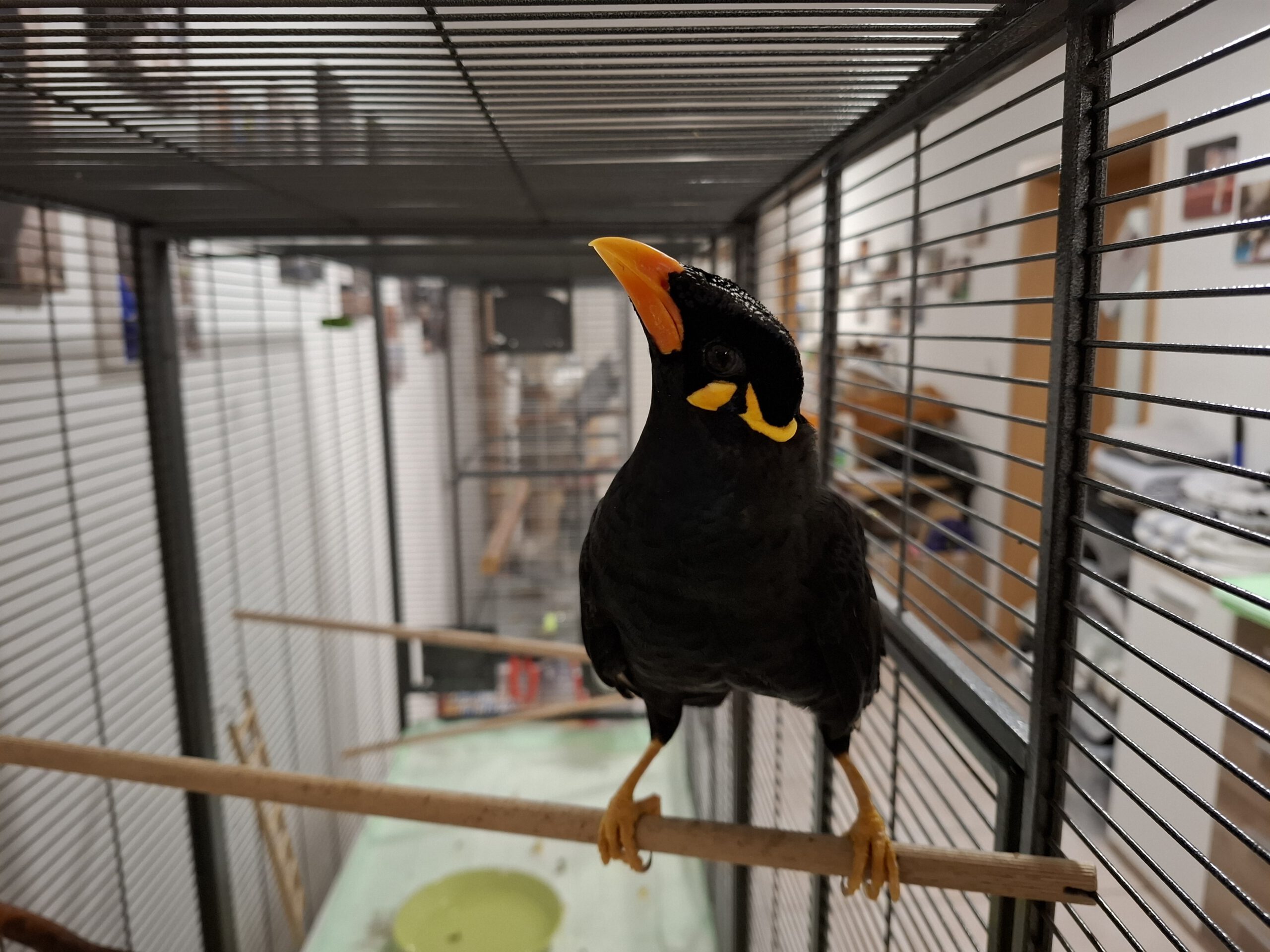 🐾 Haltung: Er sollte nicht mit anderen Vogelarten vergesellschaftet werden. Er benötigt eine großzügige Voliere und viel beaufsichtigten Freiflug. Käfighaltung ist nur als Nachtquartier oder zur kurzen Sicherung geeignet. Die Mindestgröße der Voliere beträgt 200 x 100 x 180 cm. Eine Übernachtungsunterkunft sollte mindestens 120 x 50 x 50 cm groß sein. Unterkünfte sollten mit drei seitlichen Plexiglasscheiben ausgestattet sen. Beos sind nicht stubenrein, ihr Kot unterscheidet sich von dem eines Körnerfressers, da sie diesen hinter sich her spritzen. Er benötigt ein großes Badehaus, da Beos wahre Wasserratten sind. Daher ist der Reinigungsaufwand bei der Beo-Haltung deutlich höher als bei anderen Vögeln. Als Einstreu für die Voliere ist besonders saugfähiger Vogelsand besser geeignet als normale Streu. Sitzstangen aus Naturholz sollten regelmäßig komplett ausgetauscht werden, um Milben- und Pilzbefall vorzubeugen. Im Gegensatz zu Papageien benagen Beos die Naturholzstangen nicht, aber sie benötigen sie, um ihre Fußmuskulatur zu trainieren und Sohlenballengeschwüre zu vermeiden. Auch für Außenhaltung geeignet. Lebenserwartung circa 15 bis 20 Jahre. Verbreitungsgebiet: Südasien. Lebensraum: immergrüne laubabwerfende Wälder. Ernährung: Früchte, Insekten, Echsen.