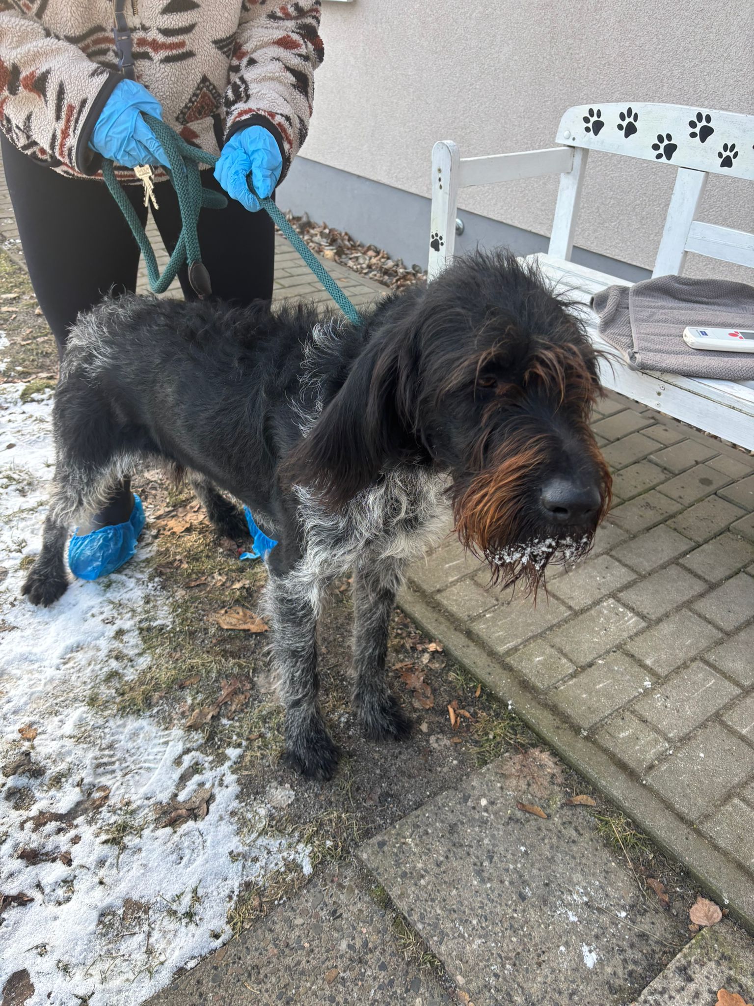 🐾 Geschlecht: Männlich 🐾 Rasse: Deutsch Drahthaar 🐾 Aussehen: schwarz-schimmel 🐾 Gechipt: Ja 🐾 Im Tierheim seit/Herkunft: 14.02.2026/Falkensee