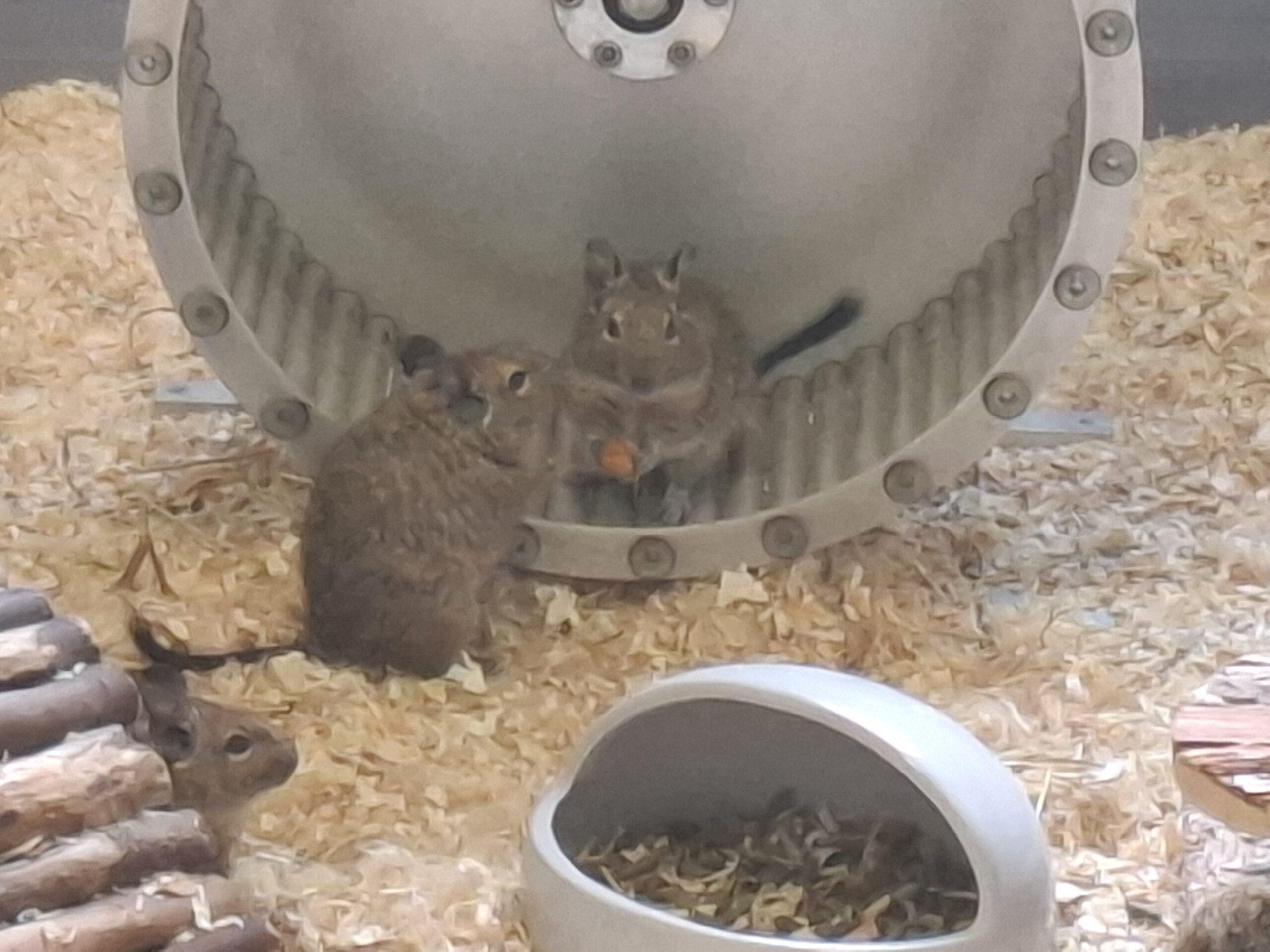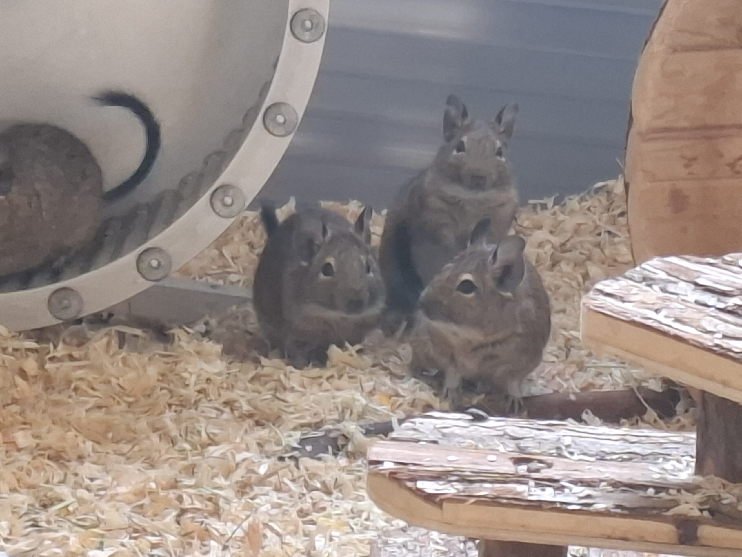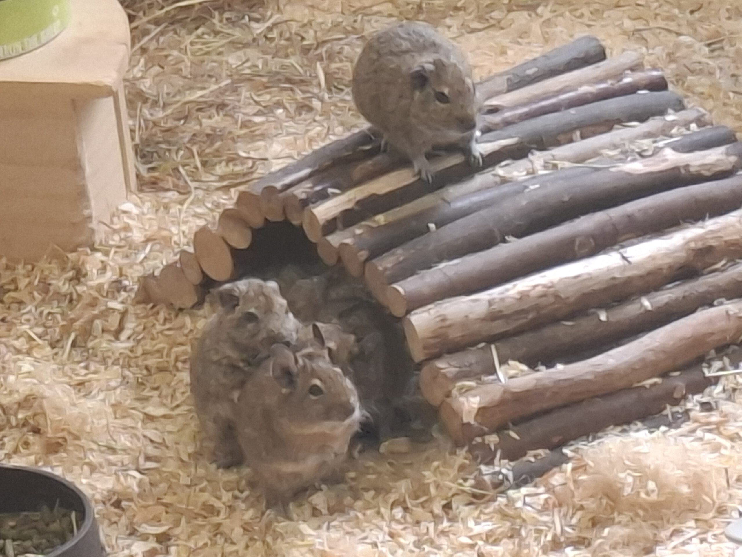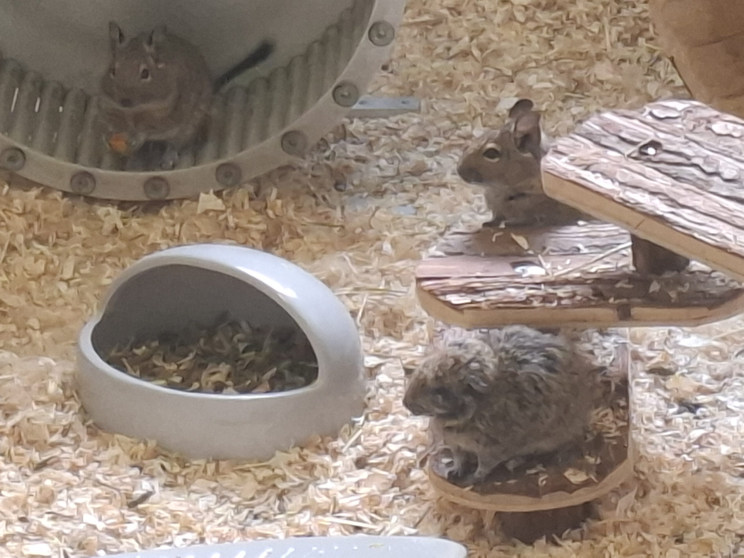 🐾 Abgabegrund: Überforderung 🐾 Im Tierheim seit: 23.05.2025 🐾 Eigenschaften/Besonderheiten: nur in Gruppenhaltung, extrem aktiv; sie lieben es, zu klettern, zu springen und brauchen daher auch viel Platz. Außerdem buddeln und nagen sie gern, sodass der Käfig ausbruchsicher sein muss. Sie können zahm werden, sind aber keine Streicheltiere für Kinder. Unterbringung: nutzbare Fläche von mindestens 3 m²; gern auf mehrere Ebenen verteilen; ausreichende Anzahl an Rückzugsmöglichkeiten und Unterschlüpfen, in denen die gesamte Gruppe Platz findet, Sandbad, gelegentlicher Freilauf in einem gesicherten Bereich unter Aufsicht, Vermittlung in kleinen Gruppen oder individuell in eine bereits bestehende Gruppe, bevorzugt mit der Haltung von 3 bis 5 Tieren 🐾 Vermittelbar in Haushalten mit Kindern: nicht für Kinder geeignet